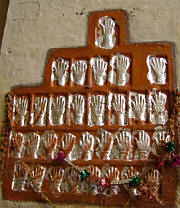 The sati handprints of the maharaja's wives when they burned themselves on his funeral pyre