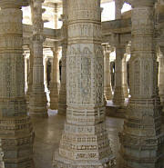 Ranakpur - Jain Temples This is one of the biggest Jain complexes in India. The main temple has 1,444 pillars supporting it - with no two pillars alike. |