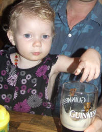 Saffron trying out Japanese Guinness at an Irish Pub on Daddy's birthday