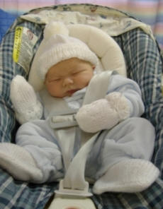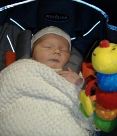weighed in at a very healthy 9lb 4oz and is blonde haired and blue eyed