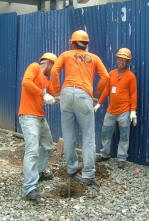 Pics from my landfill site in Hong Kong - it's HUGE and I've been surveying at the rock face on scaffolding over the vast majority of the slopes you can see. Basically any rock you can see on the pictures has been surveyed by me and my team (of one other staff member!). The base level keeps being lowered which makes it deeper and deeper. The middle pic below shows the final blast to fracture the rock to excavate down to the very base level.
