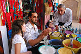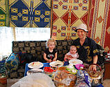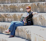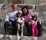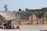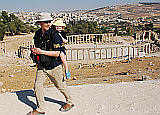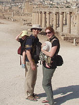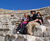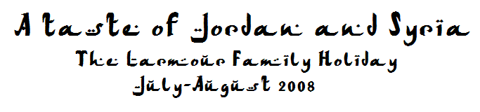 Samer and Ruba also made sure we ate lots of local food while we were in Amman, both home cooked and at places they took us out to. And mint tea was in abundant supply, as well as very strong thimbles of coffee, and of course baklava, the divine Arabic sweets (which Kirsty would eat all day if it wasn’t for their crazy calorie content!!!) We also visited Amman town centre, and in the heat viewed the sights mainly from the car! We did venture into the Roman Theatre, built into a hillside and capable of holding 6000 people, even today, when it’s used for concerts. It was very pleasantly empty, possibly due to a crazy Palestinian having shot 6 people there just 2 weeks before. |