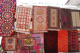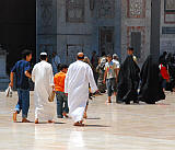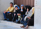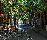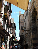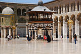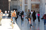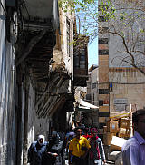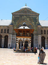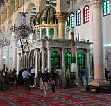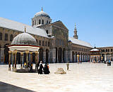 Once in Damascus we had to change to a regular taxi to head to the old city where we were staying – our guy must have flagged us the oldest taxi in the country – Saffron found the clatters and bangs hilarious and sang songs the whole way round Damascus, to the amusement of the old fella driving it! Our hostel was tucked away in a dark corner of the Christian district of the old walled city and run by a Palestinian, Jordanian, Australian guy – quite a character, and rather difficult to shut up! We stayed here on our way up through Syria, and splashed out on a nice old restored courtyard house on our way back down again! Damascus was very medieval feeling, with lots of houses overhanging the streets and lots of narrow, winding alleyways. You could totally imagine people throwing their slop buckets out of their windows and the plague spreading like wildfire!! We went to the Umayyad Mosque which was stunningly beautiful, and incredibly tranquil, despite being full of people – both worshippers and tourists. |