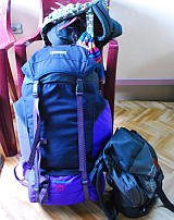 our luggage, one big rucksack, Tommy's daysack, small bag for Kirsty and Saffron's Peruvian rucksack |