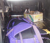 Our rucksack on the bus to Aleppo - next to a box with two goats in it!! |
