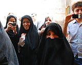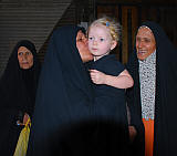 Saffy being kissed by women in the souk - she wasn't hugely impressed - neither were we - they asked us if we were Uzbeks!!! |