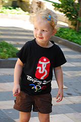 Girls at the hotel - Saffy chose her "special Zhong Guo" t-shirt for 08.08.08 |